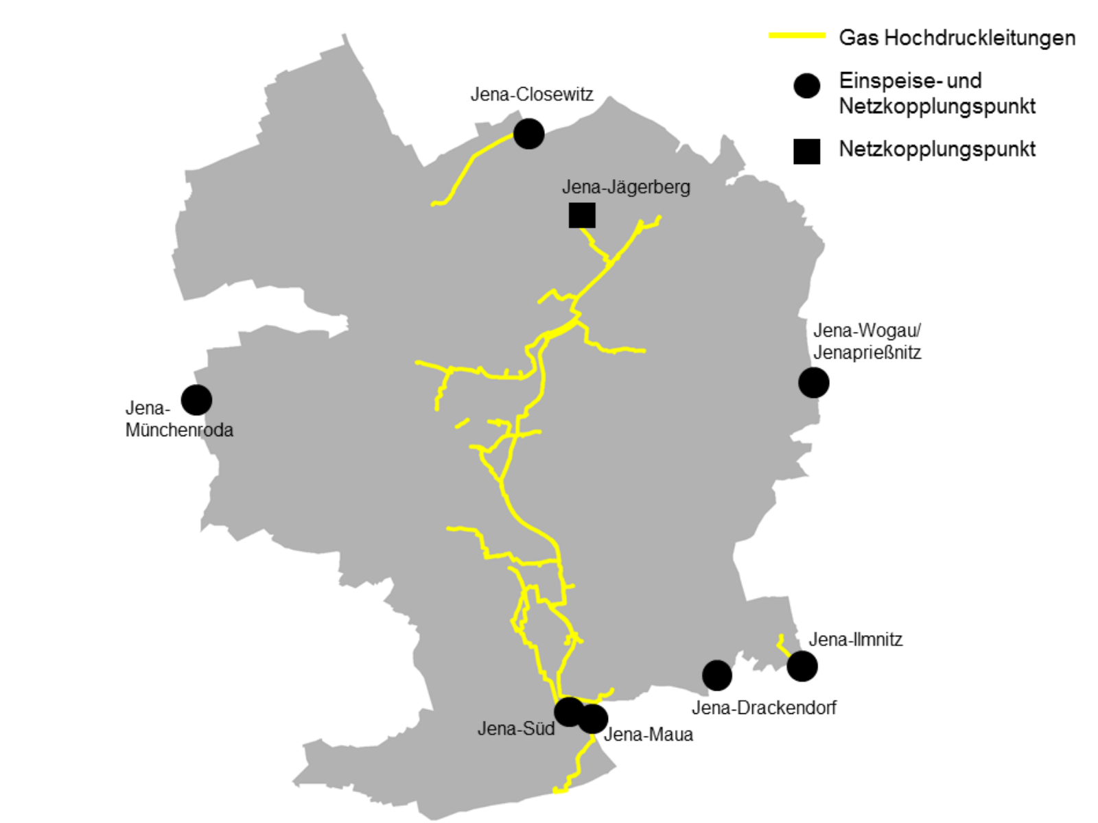In den Konzessionsgebieten von Jena, Pößneck und Döbritz führen die Stadtwerke Energie Jena - Pößneck GmbH die Grundversorgung mit Erdgas durch.